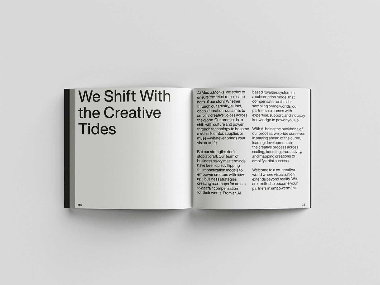 Diseño editorial para un proyecto de compilación de imágenes producidas con Midjourney por parte del equipo global de .monk
