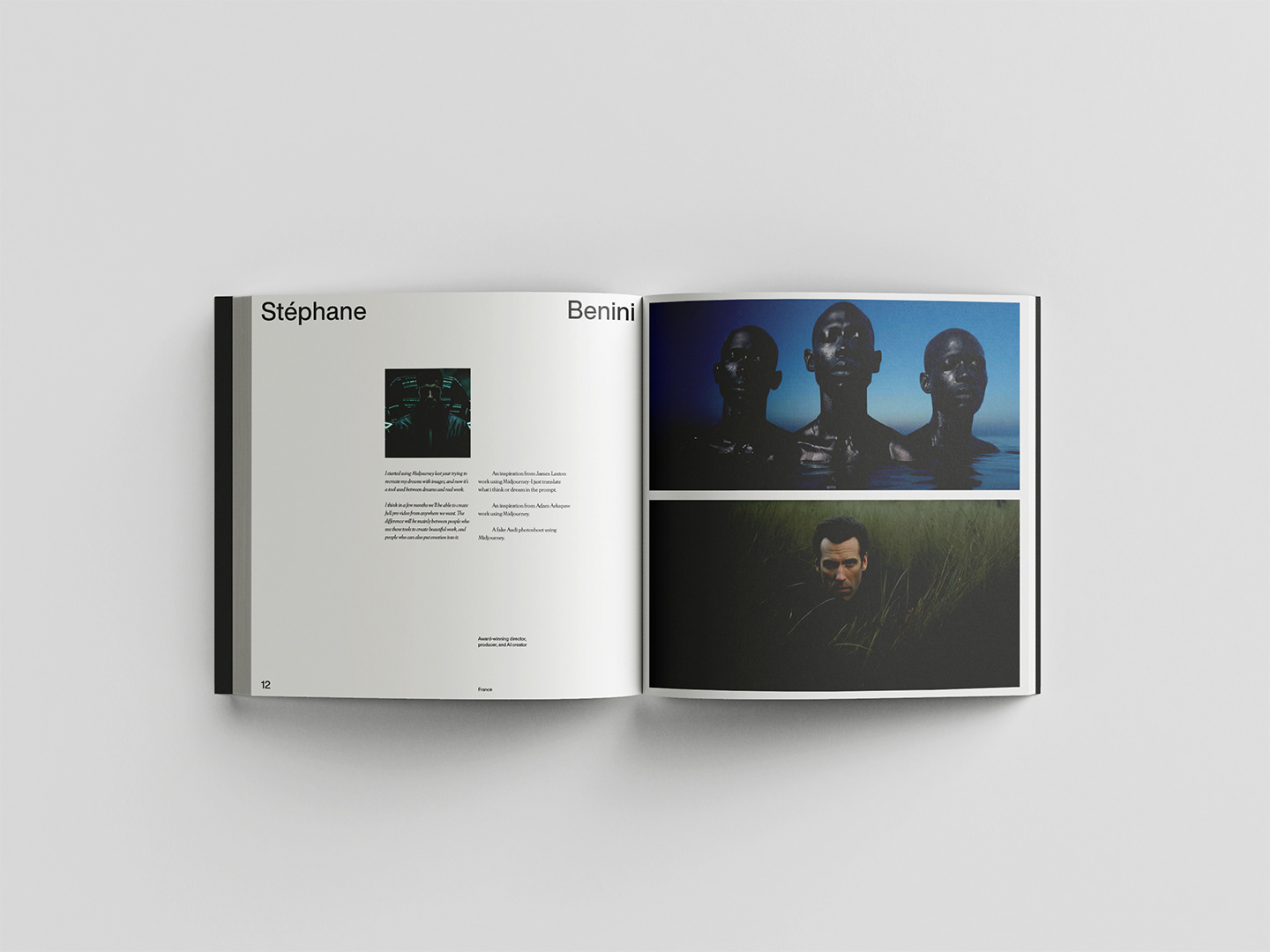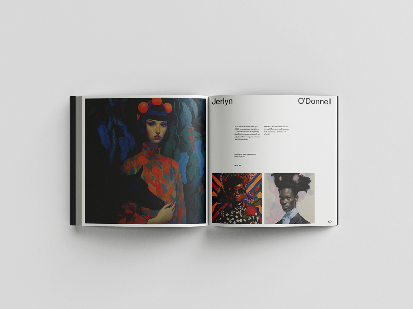 Editorial design for a compilation project of images produced with MidJourney by the global .monk team.